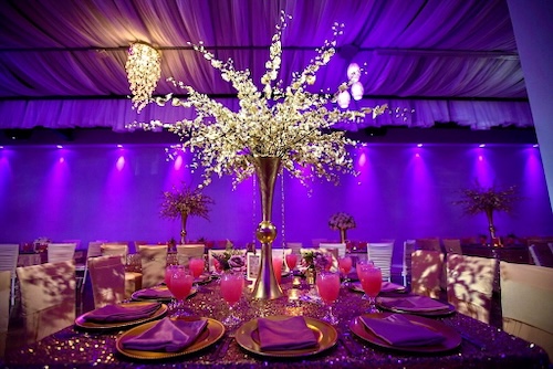 Amenities to be tailored for every event include free Wi-Fi, a changing room with a large mirror, a kitchen with steam table, movable bar, tables, chairs, different color linens with matching table runners, fine glassware, and LED lights. “We’re not going to charge you extra for specifics you feel strongly about,” says Saucedo.